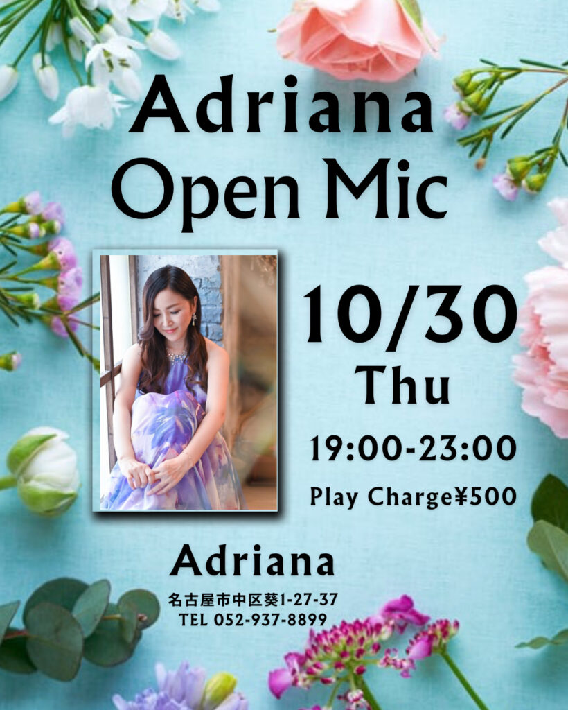10月30日に新栄のピアノバーアドリアーナでオープンマイクを行います。